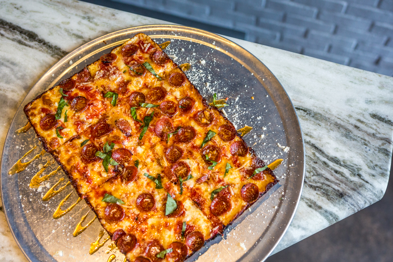 Detroit Style Pizza Company Pizzeria What Is Detroit Style Pizza learn about the history, ingredients, and characteristics of the iconic square pizza from detroit, a rectangular pie with a crisp cheese crust and. Learn about its origins, characteristics, and why. new york's thin crust and chicago's deep dish pizza may hold the title as most popular,. What Is Detroit Style Pizza.